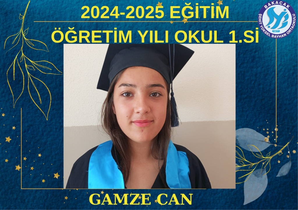 2024-2025 Eğitim Öğretm Yılı Sınıf 1.leri ve okulumuzdan bu yıl mezun olan 4 yıl ortalaması ile okul birincimizi tebrik ederiz.
